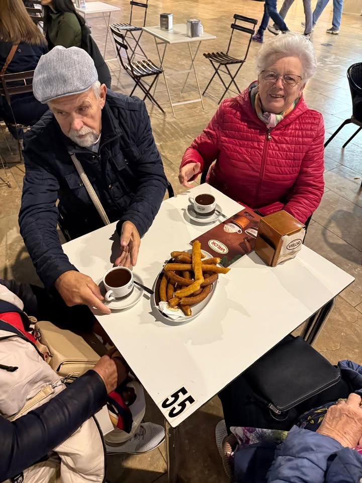 Nasza grupa była zachwycona – aromatyczna czekolada, świeżo smażone churrosy i ciepła atmosfera lokalu sprawiły, że ta przerwa zamieniła się w prawdziwą ucztę dla zmysłów. Wspólne delektowanie się hiszpańskim specjałem stało się kolejnym momentem integracji, śmiechu i rozmów o tym, jak pięknie smakuje kultura – dosłownie i w przenośni.