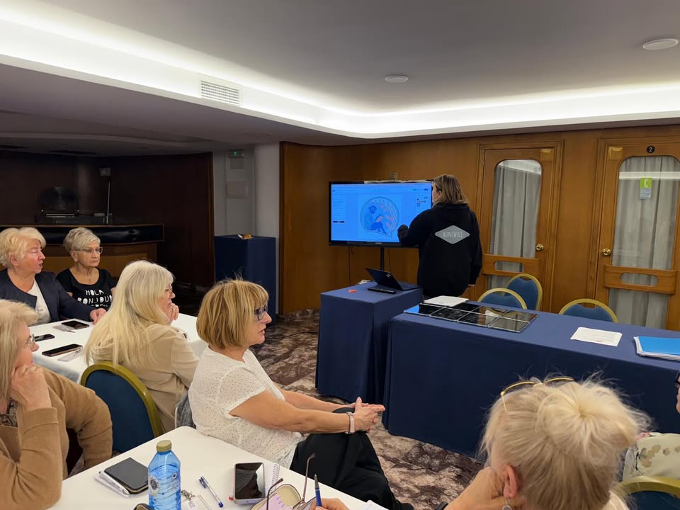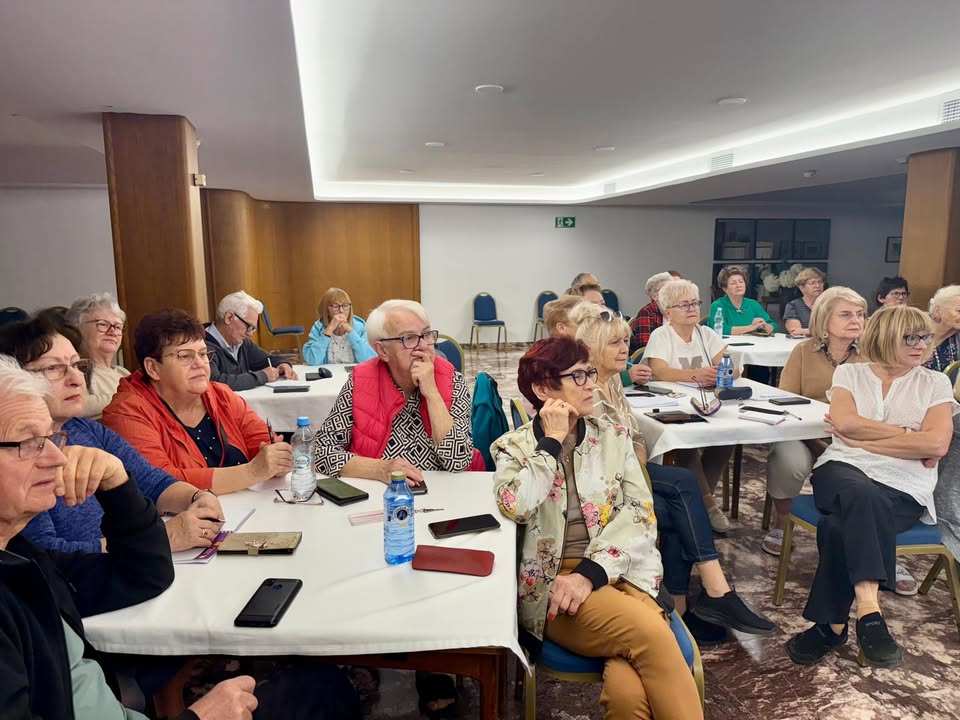 Po krótkiej przerwie kawowej uczestnicy wzięli udział w warsztacie rozwijającym umiejętność uczenia się. Podczas zajęć „AI jako twój prywatny nauczyciel” poznali aplikację Beehive AI, dzięki której można ćwiczyć logiczne myślenie, język i pamięć. Seniorzy testowali różne funkcje narzędzia, tworzyli własne zagadki, które sztuczna inteligencja miała rozwiązać, a następnie wspólnie analizowali wyniki. Zajęcia pokazały, że technologia może być przyjazna i dostępna również dla osób starszych, a nauka z pomocą AI może być ciekawą formą samorozwoju.