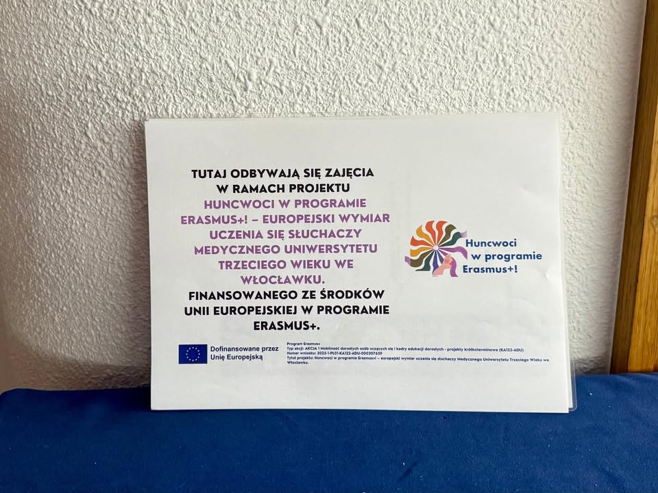 Program Erasmus+, EErasmus+ Edukacja dorosłychTyp akcji: AKCJA 1 Mobilność dorosłych osób uczących się i kadry edukacji dorosłych - projekty krótkoterminowe (KA122-ADU) Numer wniosku: 2025-1-PL01-KA122-ADU-000307659 Tytuł projektu: Huncwoci w programie Erasmus+! – europejski wymiar uczenia się słuchaczy Medycznego Uniwersytetu Trzeciego Wieku we Włocławku.