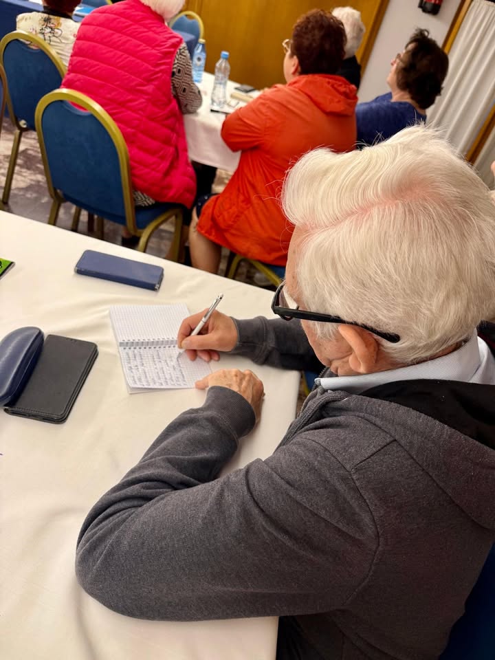 Drugi blok zajęć miał charakter językowy. Seniorzy ćwiczyli komunikację w praktyce, biorąc udział w scenkach „Zakupy i targ w Alicante”. W parach odgrywali role klientów i sprzedawców, ucząc się słownictwa związanego z produktami spożywczymi i codziennymi sytuacjami. Ćwiczenia słuchowe z autentycznymi nagraniami z hiszpańskich targów pomogły oswoić się z tempem i akcentem języka używanego na co dzień.